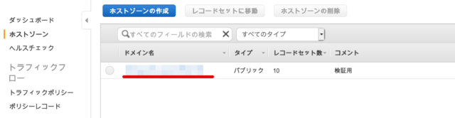作成したホストゾーンのドメイン名はメモしておいてください。のちほどCloudFormationテンプレートで使用します。