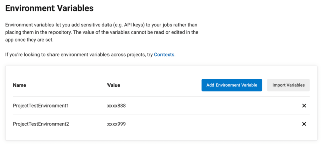 - Contextの環境変数: 複数のプロジェクトで参照できる環境変数