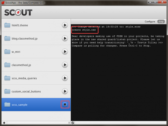 また、Scoutのlog画面も確認してみましょう。正しく上書き保存されていれば以下のような画面になります。