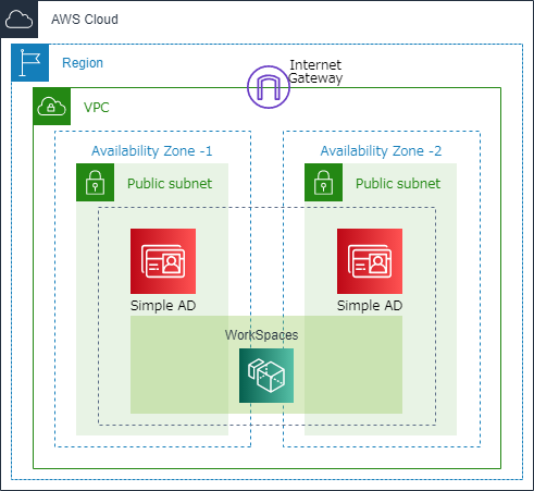 - Simple Active Directory (Simple AD) - Directory Service ขั้นต่ำที่จำเป็นสำหรับใช้ WorkSpaces และกรณีที่ใช้เฉพาะ Windows ในระบบปฏิบัติการเดสก์ท็อปเสมือน