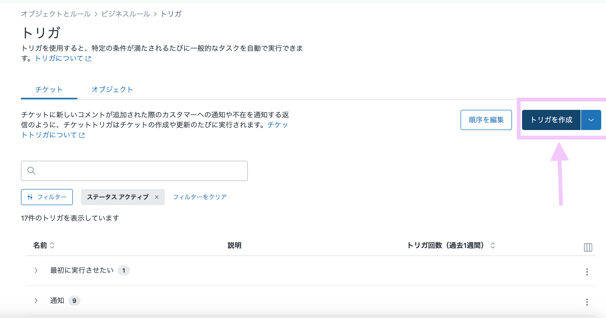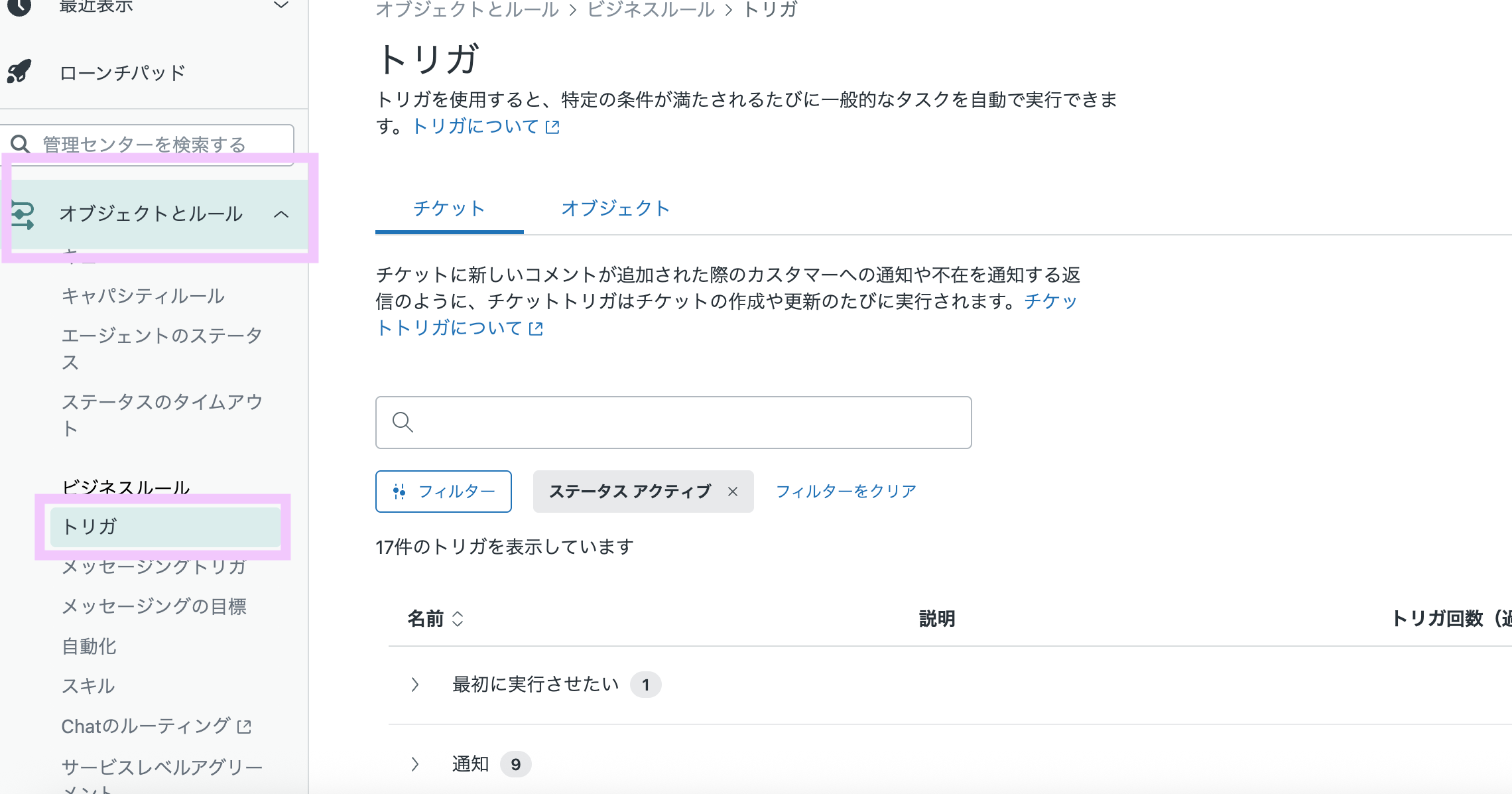 サイドバーのオブジェクトとルール> トリガ を選択します。