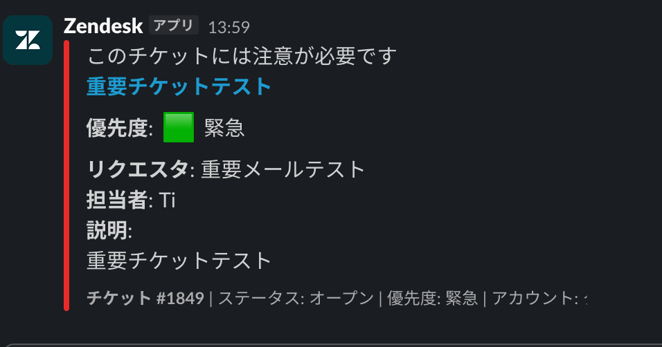 これで、優先度が緊急のチケットが、Slackにリアルタイムで通知されるようになります!
