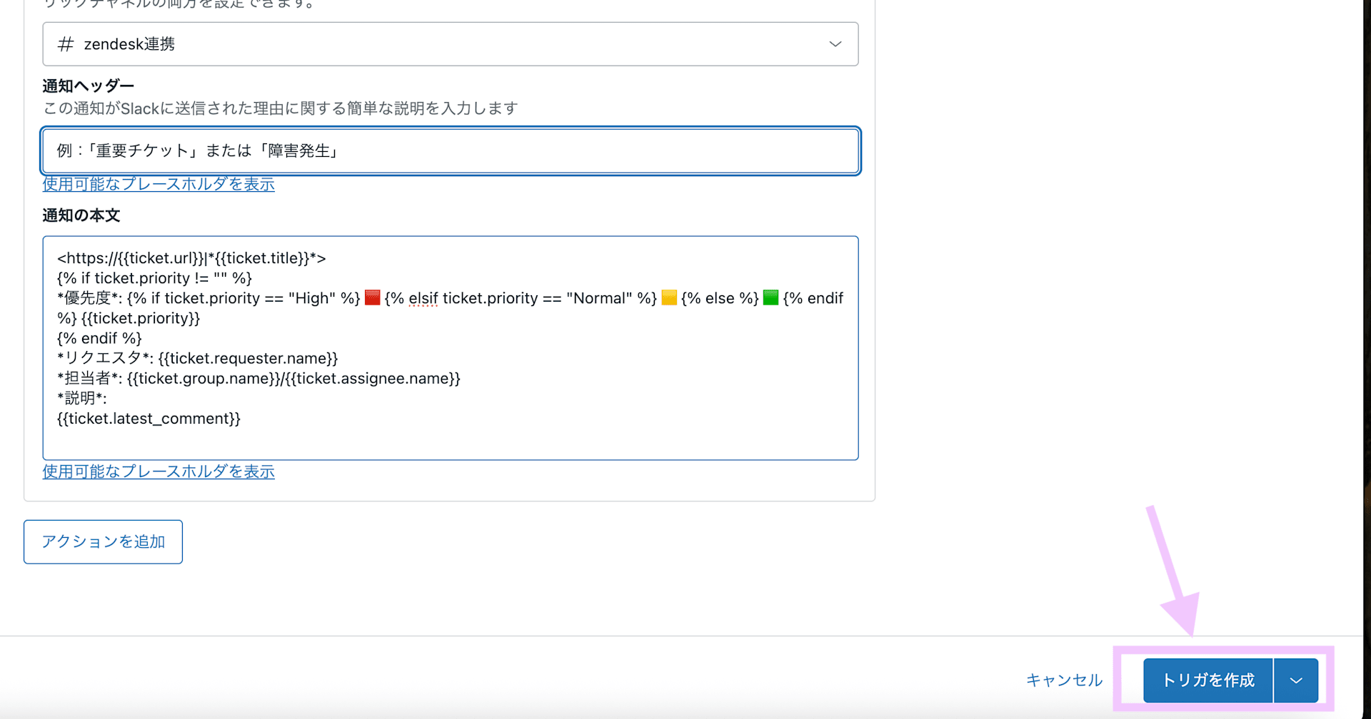 以上の設定が完了したら「トリガを作成」を選択します。