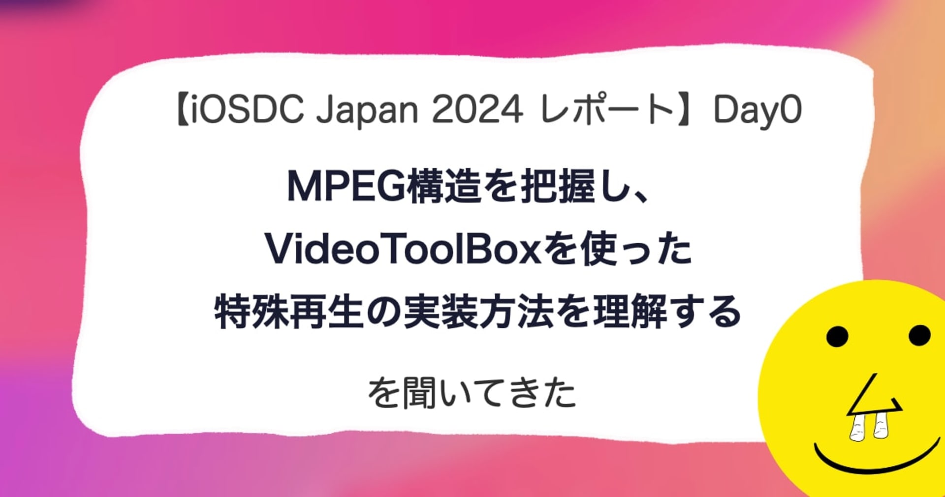 【iOSDC Japan 2024 レポート】DAY 0「MPEG構造を把握し、VideoToolBoxを使った特殊再生の実装方法を理解する」を聞いてきた。