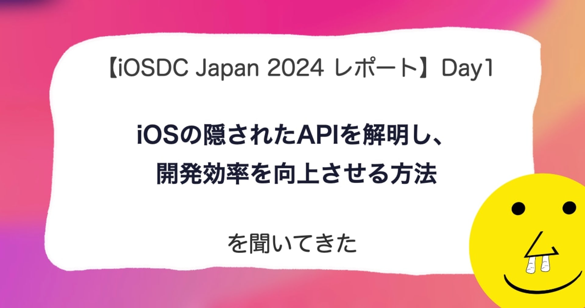 【iOSDC Japan 2024 レポート】DAY 1「iOSの隠されたAPIを解明し、開発効率を向上させる方法」を聞いてきた。