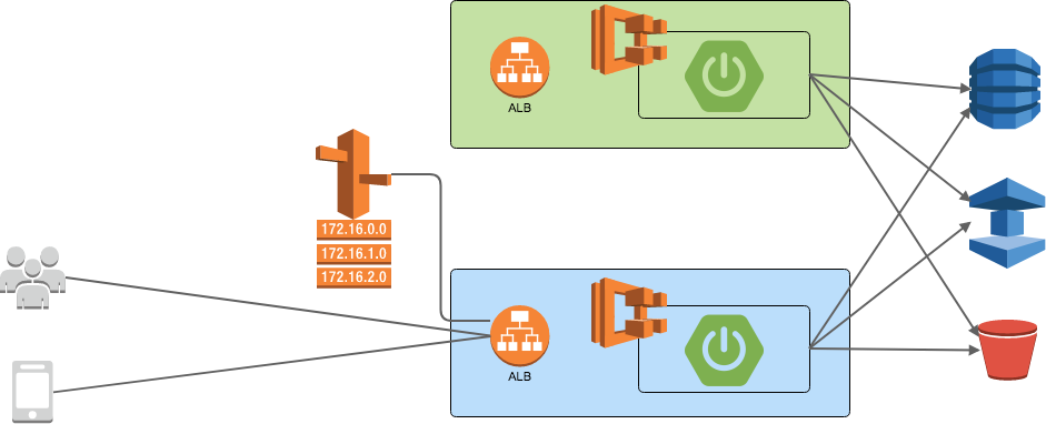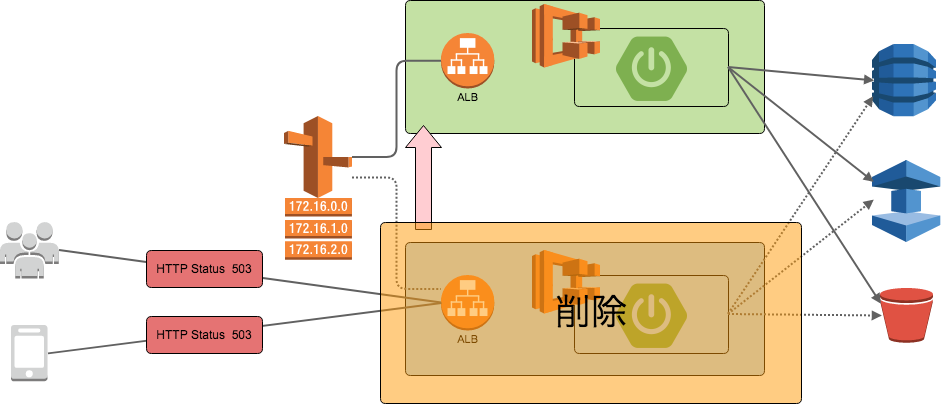 この際に、特定のRequestのみを新しい環境へ振り分けるのか、全体のXX%を振り分けるのか、全量を一気に振り分けるのかの違いはありますが、何らかの方法でRequestのRoutingを新たな環境へ切り替えます。AWSの場合はRoute 53(DNSサービス)を利用することが多いのではないでしょうか。