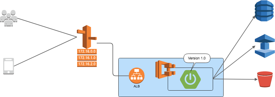まず前提としてBlue環境で稼働しているアプリケーションがあるとします。ここでのアプリケーションVersionは 1.0 とします。