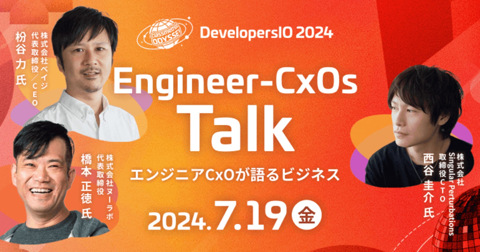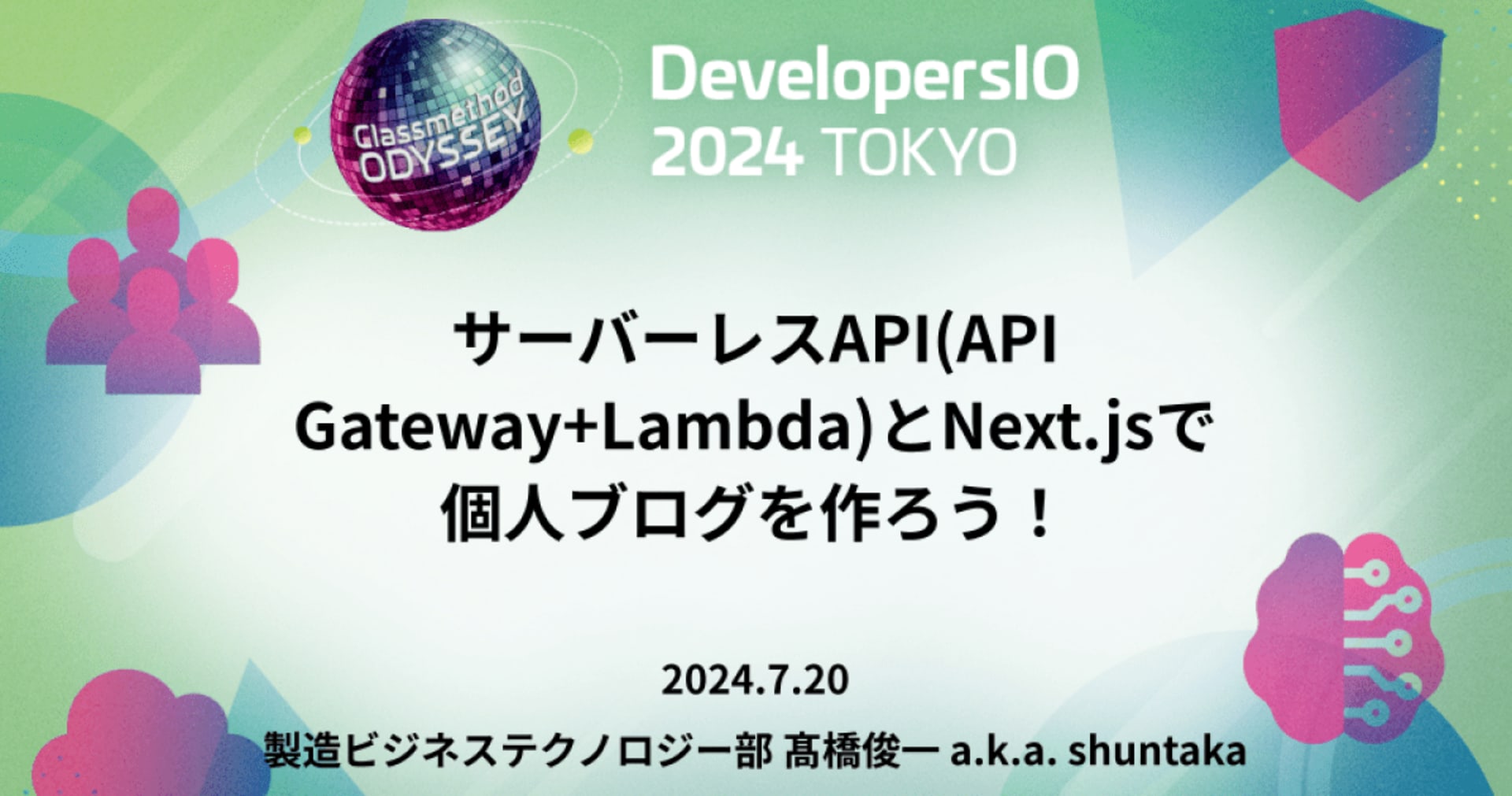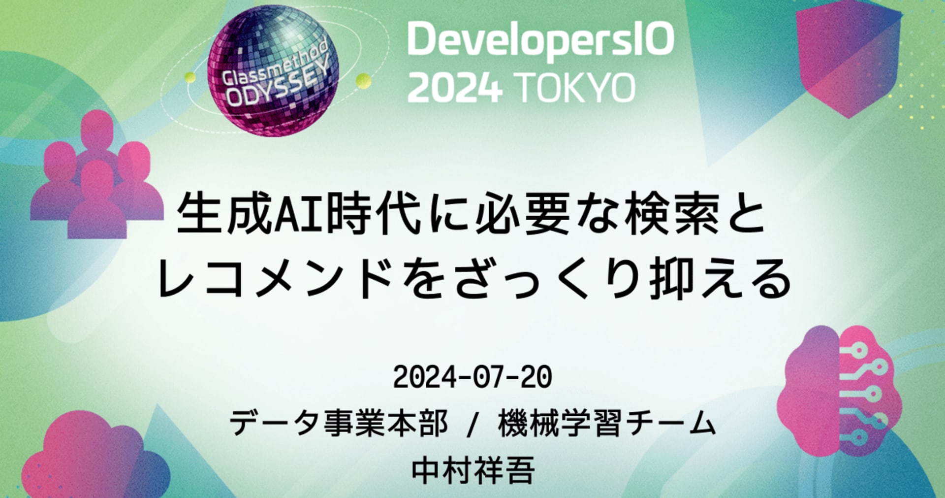 2024年07月12日(金)、19日(金)、20日(土)の各日に開催された「DevelopersIO 2024 TOKYO」に関連するイベントのエントリをまとめています。 ※イベントサイト: Classmethod Odyssey クラスメソッド設立20周年テックイベント オフライン日程セッション紹介 https://event.classmethod.jp/odyssey-offline