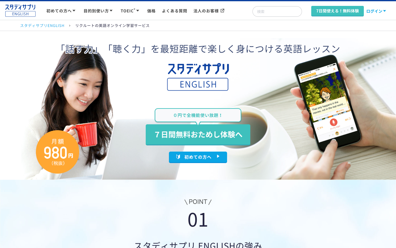 リクルート社が提供しているオンライン英語学習アプリです。ドラマ仕立てのストーリーを眺めながら、ゲーム感覚で日常英会話から単語力が増強できます。7日間のお試し体験ができるので、先ずは試してみると良いでしょう!